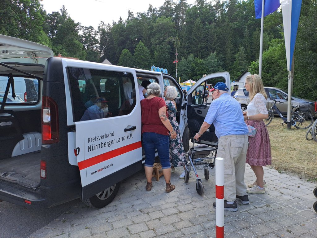 Seniorennachmittag der Gemeinde Schwarzenbruck auf der Kirchweih, aber keine Senioren aus dem Faberschloß dabei. Dies war viele Jahre der Status. Der AWO Ortsverein und die Leitung des Faberschlosses dachten, dies zu ändern. Mit dem AWO Bus wurden dieses Jahr die interessierten Bewohner des Seniorenheimes zur Kirchweih gefahren. Engagierte Familienmitglieder schoben ihre Angehörige im Rollstuhl den Berg vom Faberschloß hinunter. Auch das letzte Hindernis, eine fehlende Behindertentoilette wurde durch eine gemeinsame Finanzierung zwischen Kirchweihverein und AWO Ortsverein schnell gelöst. So feierten die fast 30 Bewohner des Faberschlosses einen zünftigen Kirchweihnachmittag. Die übliche Unterstützung mit Gutscheinen durch die Gemeinde und dem Kirchweihverein wie bei den anderen Schwarzenbrucker Senioren half beim Feiern natürlich mit.